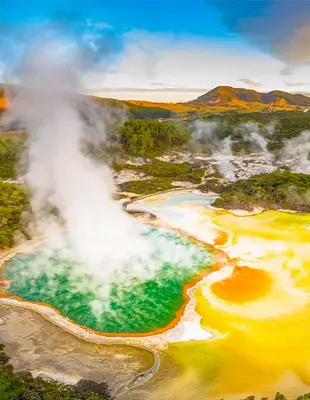 Upplev storstaden Auckland samt geotermisk aktivitet och maorikultur i Rotorua på Nordön, följt av en roadtrip genom Sydöns spektakulära natur, med bland annat Mt Cook och Franz Josef-glaciären.