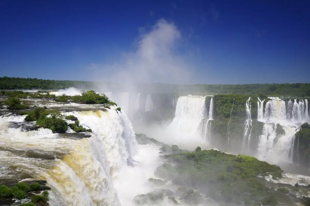 Iguazú består av 275 större och mindre vattenfall som sträcker sig över 2,7 km och har en höjd på mellan 60 och 82 meter.