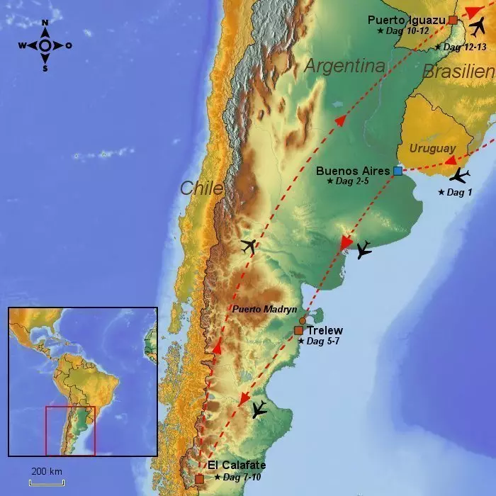 Observera att inrikesflyget från Trelew till El Calafate ofta går via Buenos Aires. Var beredd på en väldigt tidig avgång från Trelew.