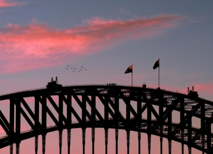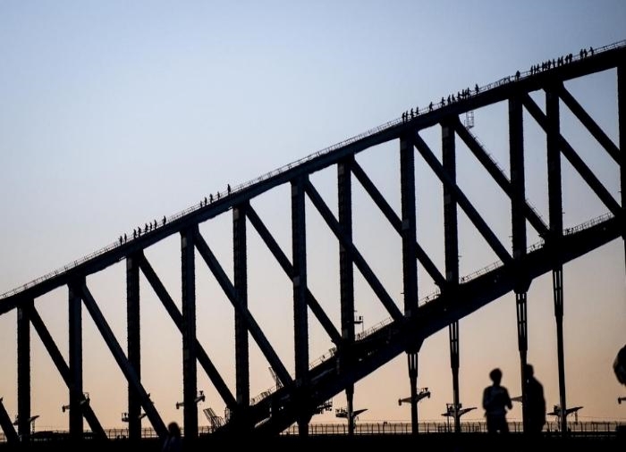 De gör det för fjärilarna i magen, når de står under den australiska flaggan på toppen av bron.