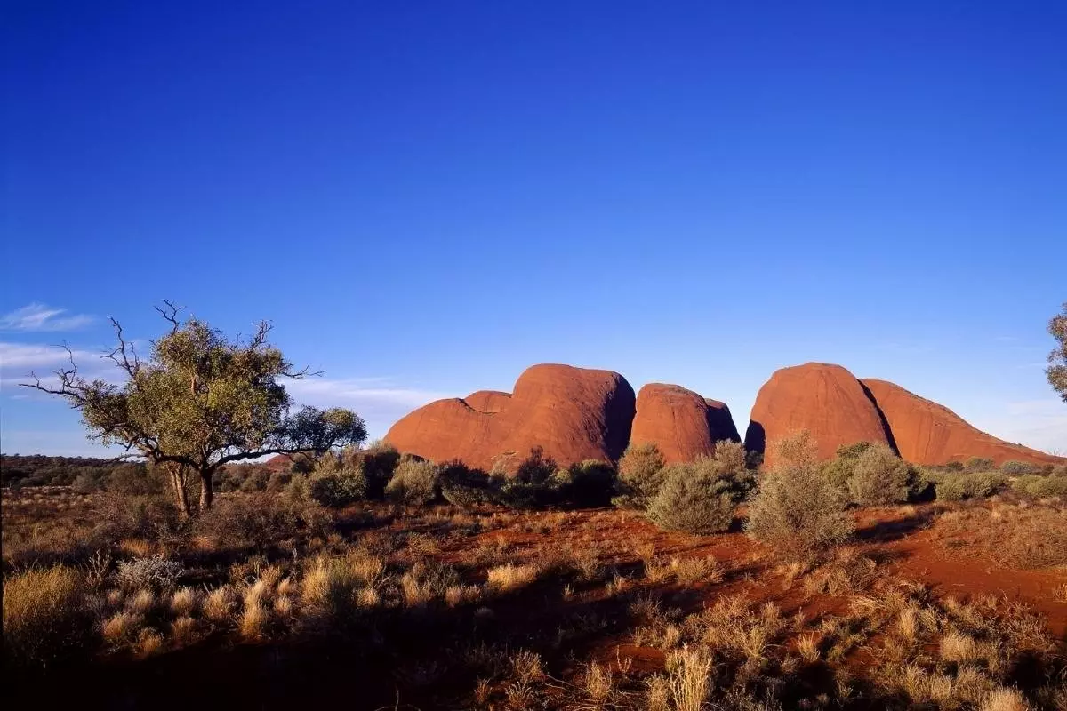Från Uluru fortsätter du till klippformationerna Kata Tjuta, som ligger drygt 50 kilometer västerut. Kata Tjuta betyder ”många huvuden” och på avstånd ser du tydligt hur de 36 runda klipporna liknar hjässor som sticker upp i landskapet.