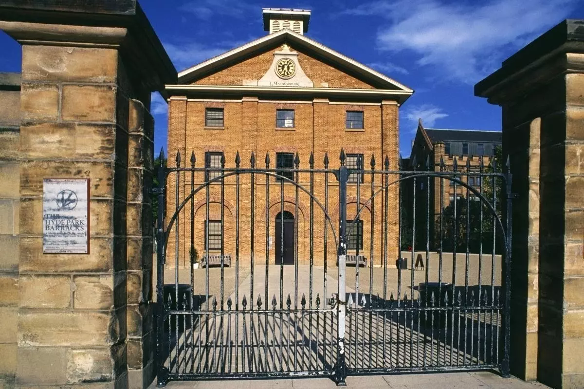 Barackerna byggdes i början av 1800-talet och skulle husera straffångar. Hyde Park Barracks står, tillsammans med en rad andra byggnader från kolonialtiden runt omkring i landet, med på UNESCOs världsarvslista.