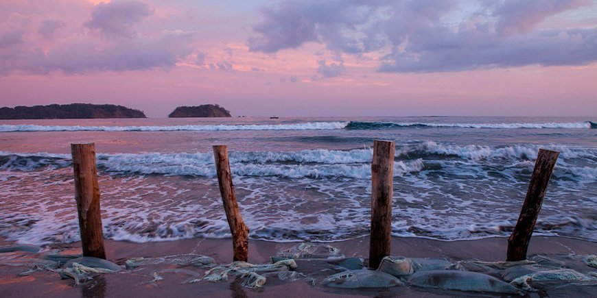 Playa Sámara erbjuder idylliska omgivelser med solnedgångar som tar andan ur dig. Himlen exploderar i gyllene och rosaskimrande nyanser när solen går ner över det lugna havet och skapar ett rofyllt, nästan drömskt tillstånd på den vackra sandstranden.