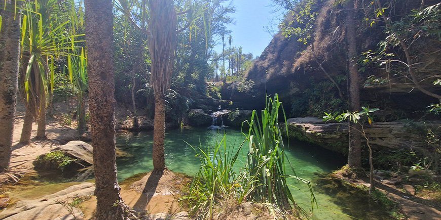 Först tänkte jag att jag skulle skriva om Isalo. Åh, för sjutton – som jag älskar Isalo! De rödbruna sandstensformationerna, de vackra oaserna med sjöar att bada i, och de månlika landskapen som får mig att tänka på scener ur “Star Wars”. Och inte särskilt många andra besökare att dela allt detta med.
