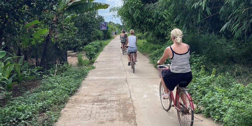 Nästa stopp på resan är Kratie, som ligger i den östra delen av Kambodja vid Mekongfloden. En biltur på 6–7 timmar, men vi njuter av åkturen och intrycken av Kambodjas frodiga och gröna landskap. I Kratie bor vi två nätter på den lilla ön Koh Trong i Mekongfloden. Man kan bo i staden Kratie, men Koh Trong absolut det roligaste valet. Vi cyklar runt ön och passerar risodlingar och plantager. Invånarna på ön har en vänlighet i särklass och överallt möter vi vänliga och leende lokalbor. Vi stoppar längs vägen för att plantera träd och delta i en lokal pomeloprovning. Besöket på den lokala matmarknaden i Kratie samt segelturen på Mekongfloden för att se de sällsynta Mekongdelfinerna var också något helt speciellt. För oss är Kratie ännu en höjdpunkt på resan.
