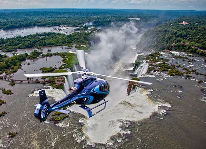 På denna helikoptertur flyger du över både den brasilianska och den argentinska nationalparken och kan se fram emot en spektakulär vy över de stora vattenfallen. Här får du verkligen uppleva vattnets kraft ur fågelperspektiv.