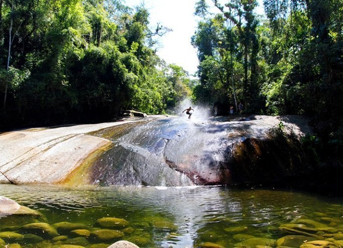 Turen börjar med en scenisk bilfärd med jeep genom den frodiga och vackra regnskogen i nationalparken Serra da Bocaina. Du vandrar till olika vackra vattenfall längs vägen, bland annat Toboggan och Pedra Branca, där du kan se äventyrslystna lokalbor åka rutschkana på de hala klipporna i vattenfallet. Det finns möjlighet att ta en svalkande simtur i det kyliga vattnet.