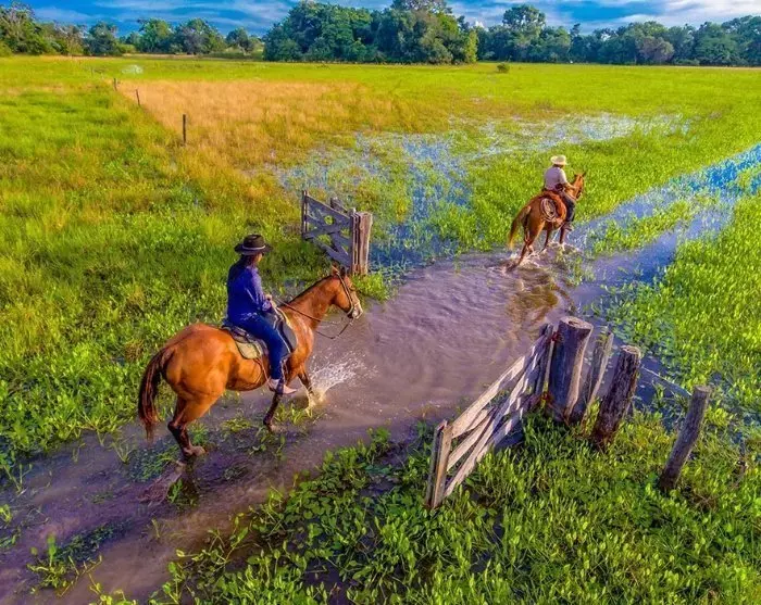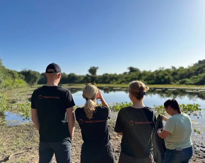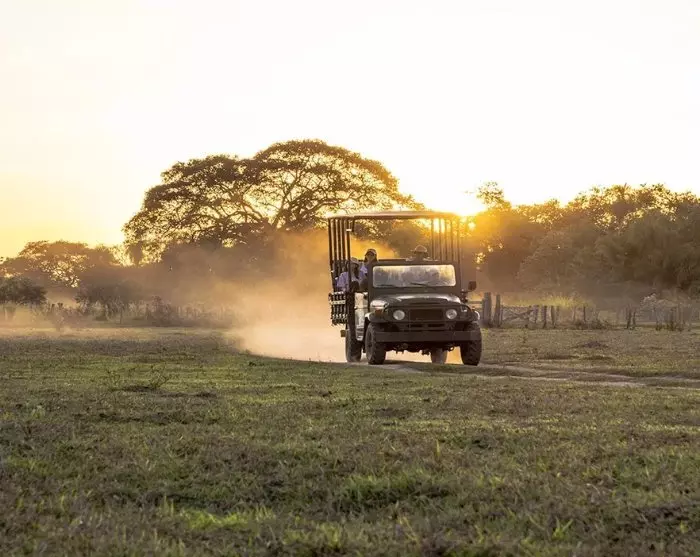 Efter en god nattsömn hämtas du på hotellet och körs till din lodge i Pantanal. Resan tar ca 3 timmar, varav den sista 1,5 timmen sker på grusväg. Redan på vägen till lodgen börjar ditt Pantanal-äventyr! De omkringliggande markerna och ängarna bjuder på olika typer av odlingar, hästar och kor. Men håll utkik över de trädtoppar och vattenhål du passerar, där du kan se olika papegojor, kajmaner och kanske en myrslok på evig jakt efter föda.