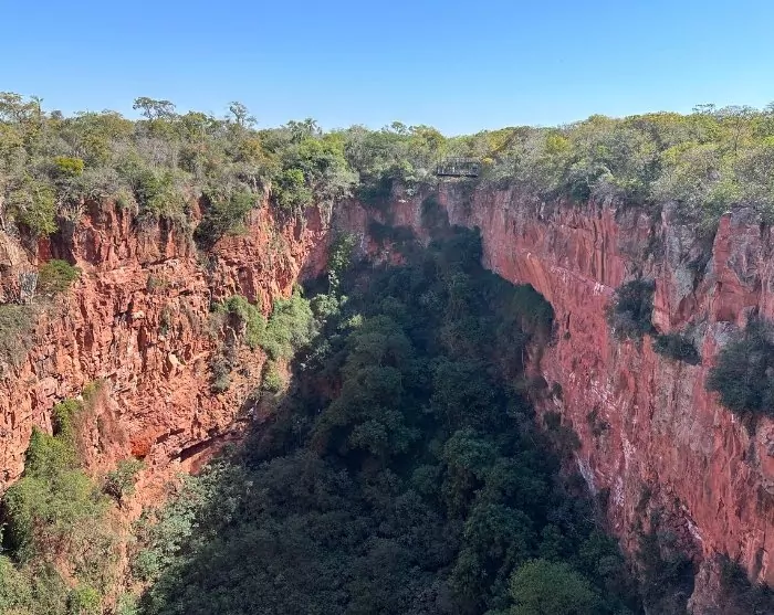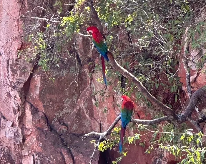 Från de kristallklara floderna går utflykten till Buraco das Araras, som är ett stort slukhål med en omkrets på så mycket som 500 meter och ett djup på cirka 100 meter. Slukhålet ligger i natursköna naturliga omgivningar, men huvudattraktionen är de vackra och skrikande röda och gröna macawpapegojorna (Ara chloropterus) som lever här och bygger sina bon i klippskrevorna.