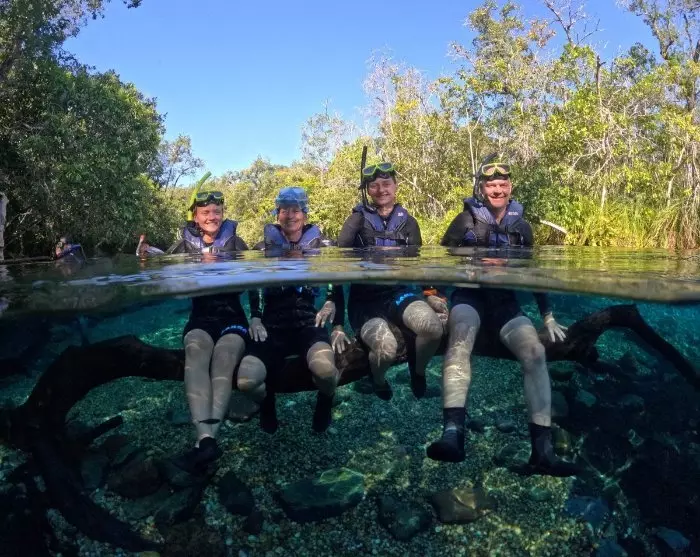 Resan börjar med en liten bilresa följt av en promenad på cirka 1,5 kilometer i den frodiga regnskogen innan du når floden. Din guide kommer att ge en detaljerad introduktion till snorkling så att alla kan delta även om du kanske aldrig har snorklat tidigare. Att se livet under vattenytan på nära håll är en obeskrivlig upplevelse. På vissa ställen kan du bara flyta med strömmen, medan du i andra behöver simma. Vattentemperaturen är cirka 26 grader, och att simma bland färgglada fiskar och frodiga vattenväxter är en helt unik upplevelse – det känns som att du befinner dig i ett stort akvarium!