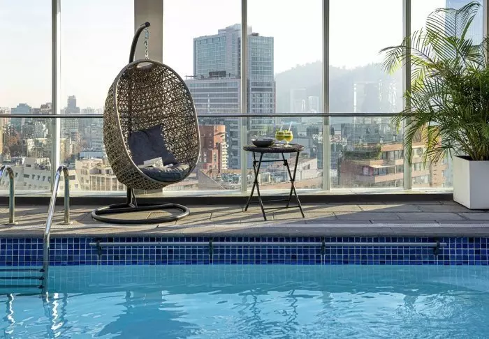 Dessutom har du möjlighet att ta ett uppfriskande dopp i hotellets utomhuspool på artonde våningen och njuta av utsikten över staden. Här finns även ett mindre gym, som du får använda mot betalning.