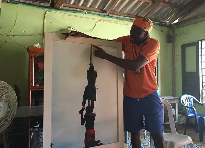 Den legendariska boxaren som gick under namnet Kid Pambelé är från Palenque de San Basilio och du kommer självklart att passera förbi hans staty.