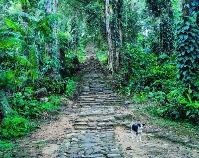 Dagens vandring börjar tidigt med en stigning upp mot ruinkomplexet, som ligger på cirka 1 200 höjdmeter. Den sista biten till Lost City sker via en brant stentrappa med 1 200 steg i olika former och storlekar. Vägen uppför trappan är utmanande, men när du når toppen kan du klappa dig själv på axeln och njuta av den imponerande utsikten som möter dig. Detta 35 hektar stora område består av ett komplext system av byggnader, vägar och trappor, som förbinds av över 150 terrasser, platser och stenlagda stigar utspridda längs bergssidorna. Från toppen får du en fantastisk vy över den täta djungeln och det imponerande ruinkomplexet.