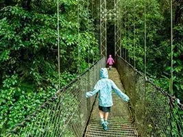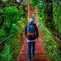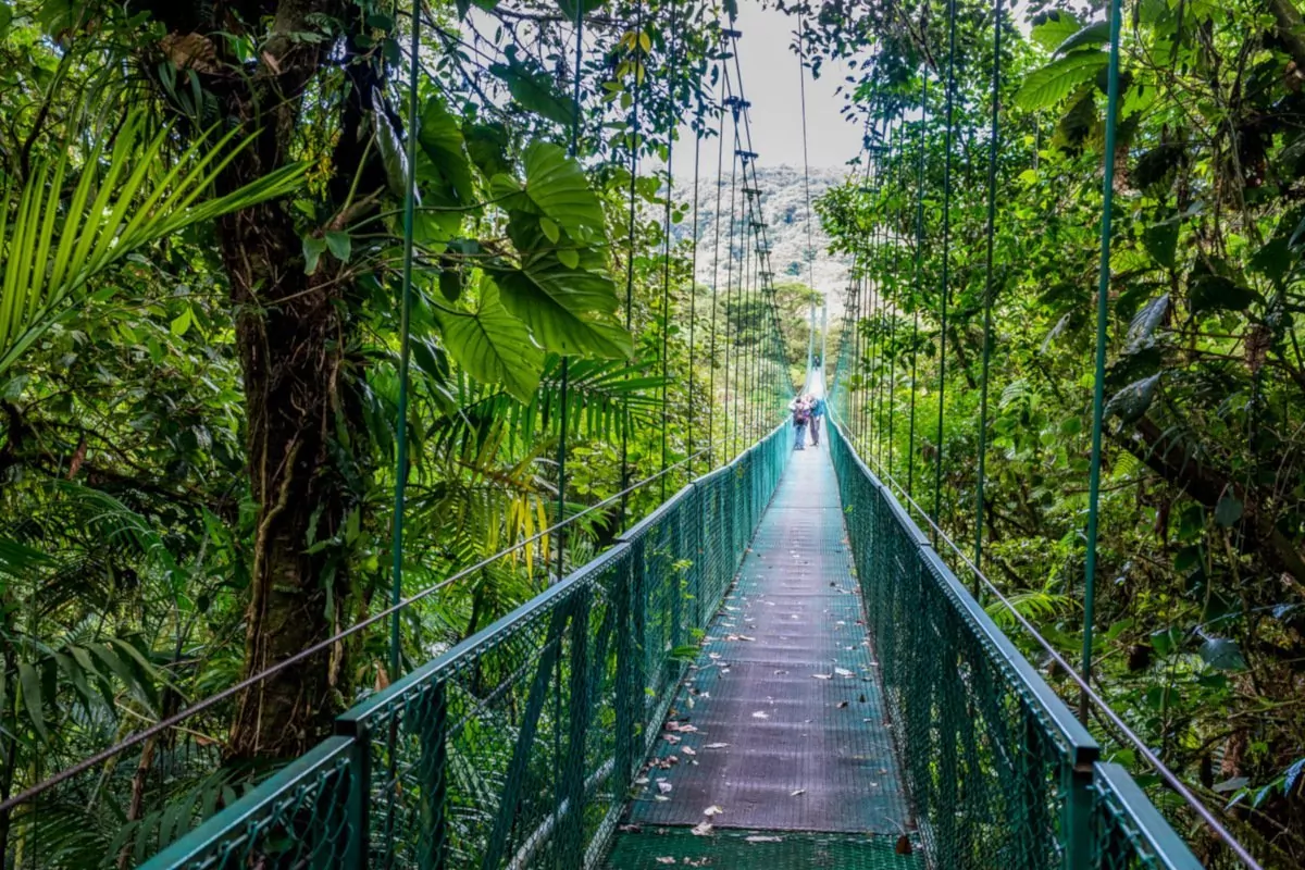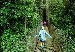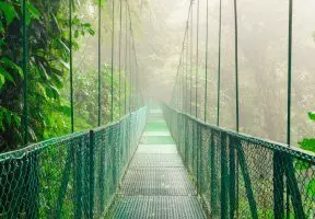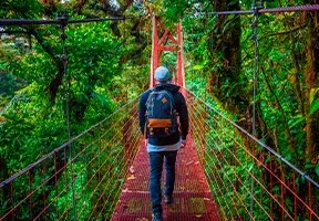 I Monteverde har du möjlighet att uppleva den mystiska molnregnskogen från ovan under en nervkittlande vandringstur på hängbroar, som sträcker sig mellan trädtopparna.