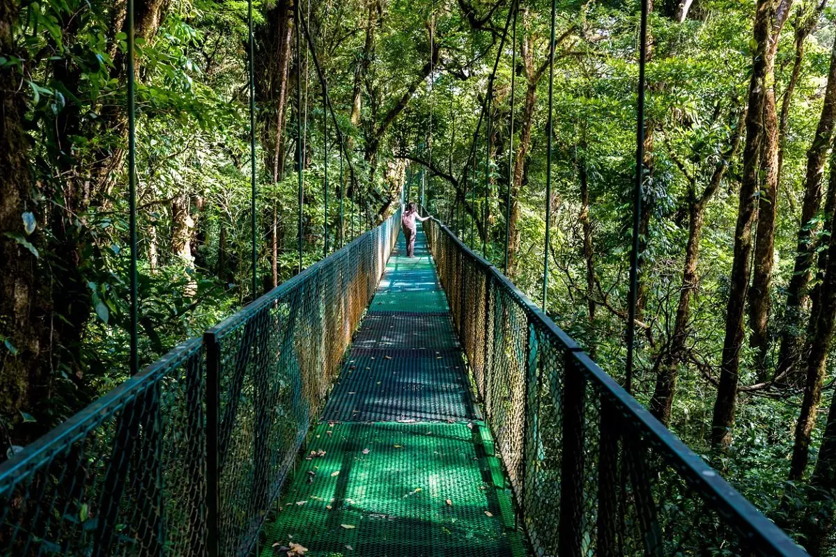 I dag ska du uppleva Monteverdes fantastiska molnregnskog på en spännande och ibland magkittlande vandring på hängbroar i trädtopparna! Turen är cirka 2,5 kilometer lång och här uppifrån kan du på nära håll studera skogens enorma träd, orkidéer, ormbunkar, mossa och otaliga växtarter som växer på trädens stammar. Du har med dig en guide som berättar om områdets imponerande antal växt-, djur-, och insektsarter.