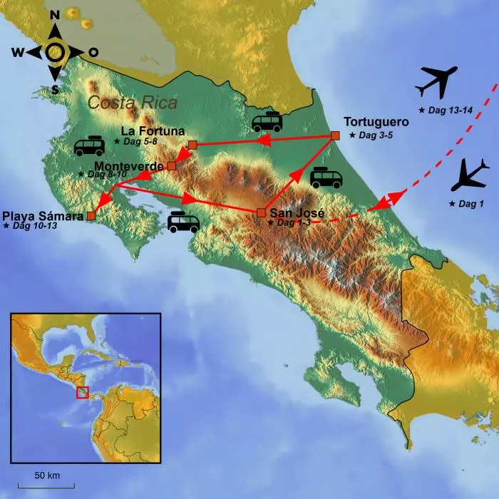 Kom nära inpå Costa Ricas vackra natur och fantastiska djurliv i Tortuguero nationalpark vid Arenal-vulkanen och i Monteverdes mystiska molnregnskog. Avsluta resan på Playa Sámaras vackra strand.