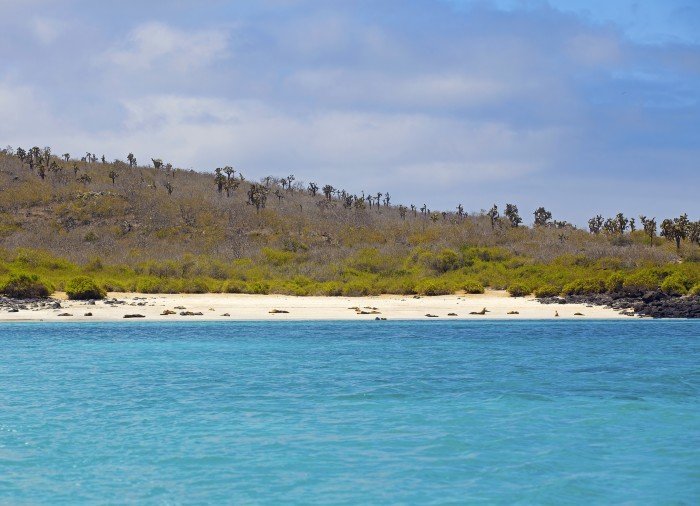 Santa Fé ligger sydost om Santa Cruz och från Puerto Ayora tar det cirka 1,5 timmar att segla med båt ut till ön. Här hälsas du välkommen av en stor sjölejonkoloni, som håller till på den vita sandstranden.