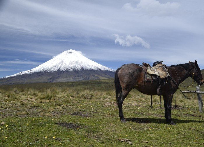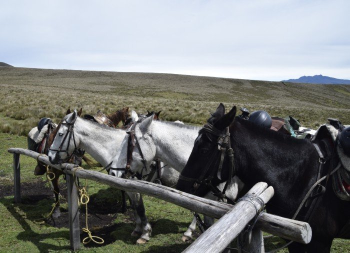 Hästen klarar det hårda arbetet upp längs bergssidan på den inaktiva vulkanen Rumiñahui, medan du i lugn och ro kan beundra den märkvärdiga naturen. Du är omringad av höga berg och vulkaner, och i klart väder har du en obeskrivlig utsikt över den snötäckta kägelvulkanen Cotopaxi.