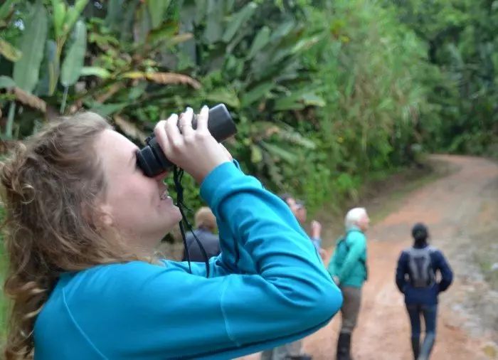 Efter frukosten ger du dig in i den äventyrliga regnskogen tillsammans med en av lodgens naturguider. Medan du njuter av de vackra omgivningarna håller din naturguide utkik efter skogens fåglar och berättar om de olika spännande fågelarterna som lever i området, samt om områdets unika ekosystem.