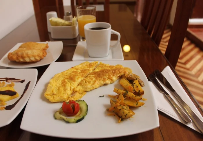 Frukost ingår och den avnjuts i hotellets lilla frukostrestaurang.