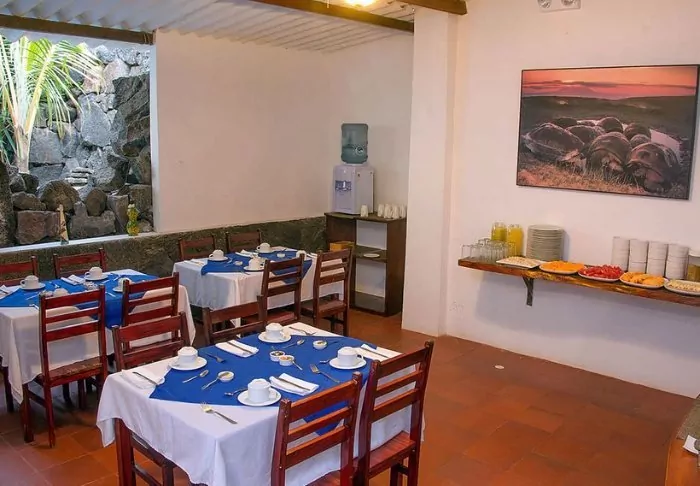 Här finns endast 16 rum (4 standardrum och 12 standardrum med utsikt). Rummen är enkelt inredda, men rena och fina med färgglada bilder på väggarna av naturen och djurlivet på Galápagosöarna. Alla rum har eget badrum, aircondition, wifi och kabel-tv.