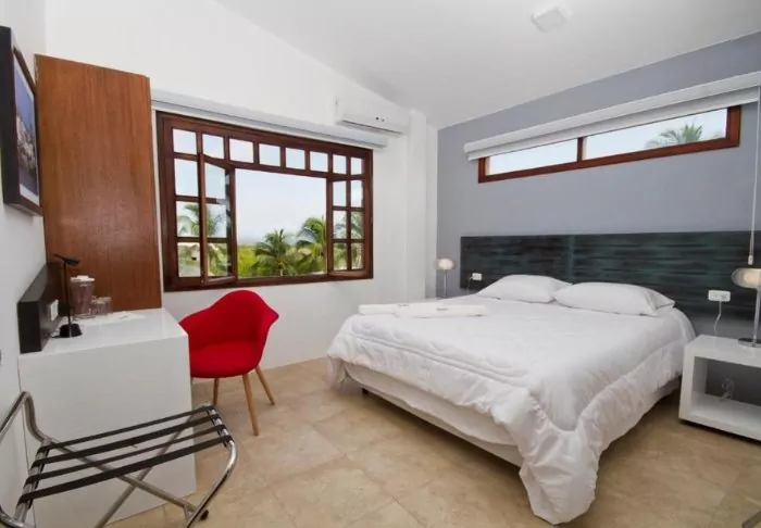 Det mysiga Hotel Volcano ligger centralt i Puerto Villamil några få minuters gångväg från den lilla stadens centrum och ett stenkast från havet. Här har du möjlighet att starta dagen med ett uppfriskande dopp i det varma havsvattnet.