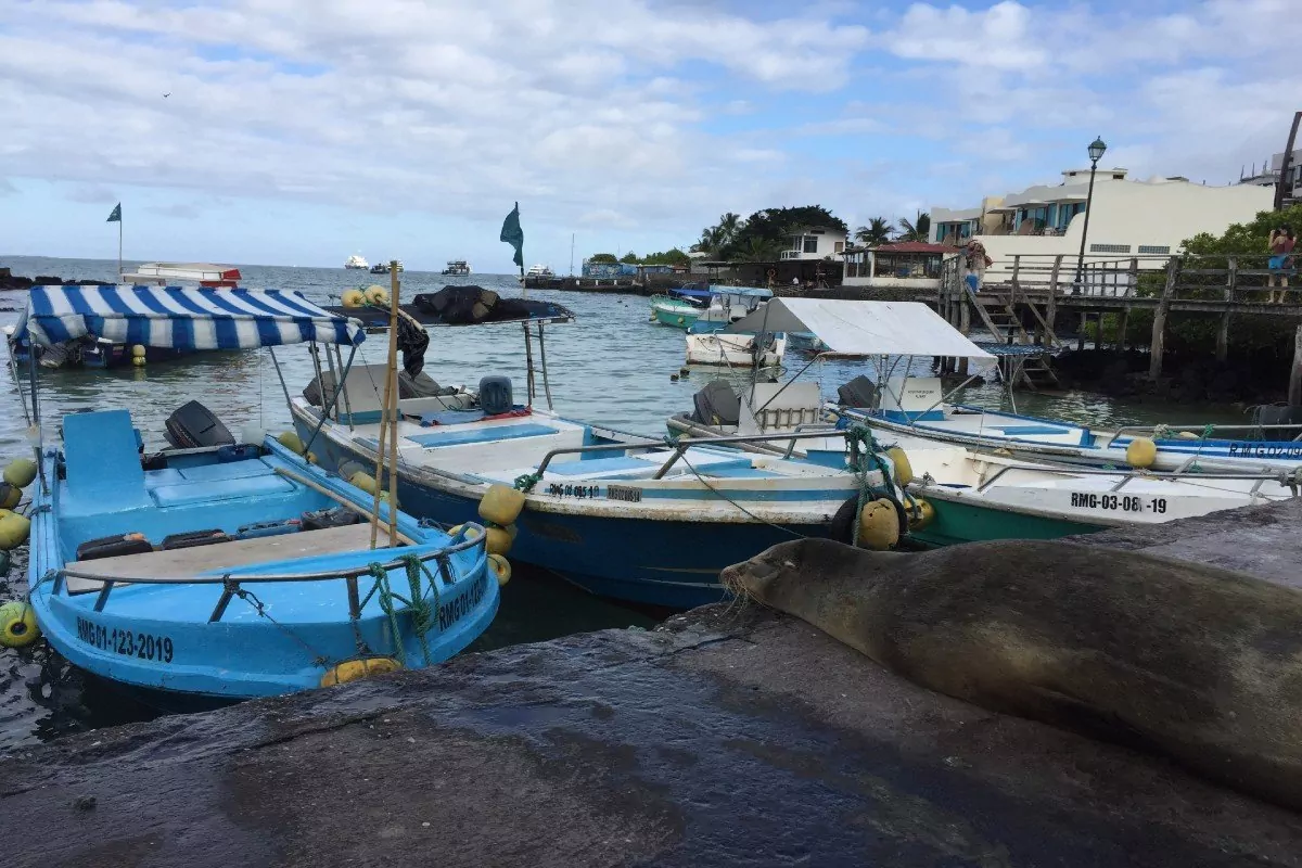 Du kan också bara koppla av i Puerto Ayora, där du på morgonen kan se hungriga och nyfikna pelikaner och sjölejon titta förbi den lilla fiskmarknaden på Avenida Charles Darwin. I hamnen är det också alltid massor av liv med rockor och vitnosade revhajar i vattnet, samt havsleguaner och färgrika krabbor som håller till på klipporna.