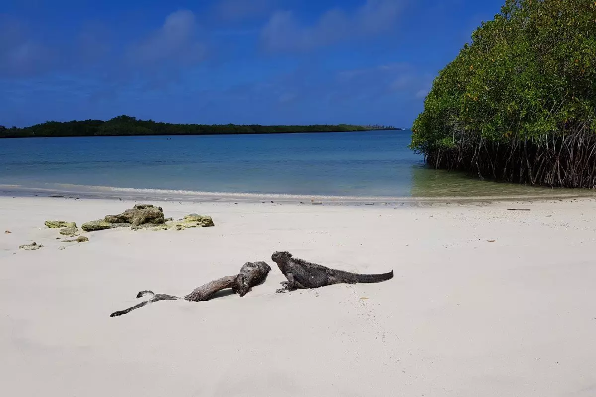 Innan turen går tillbaka till Santa Cruz stoppar ni vid den vackra isolerade stranden Playa Las Bachas. Här har du möjlighet att snorkla i det klara vattnet och uppleva det spännande livet under havsytan. Inte så långt från stranden ligger en liten lagun, där flamingor gärna håller till.