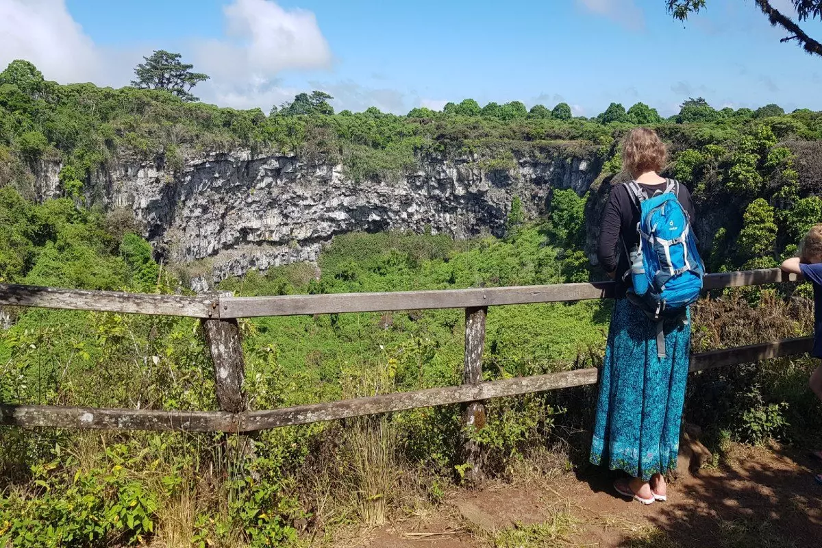 Dagens första stopp är vid Los Gemelos, som även kallas ”tvillingkratrarna” trots att det inte handlar om kratrar utan om två enorma slukhål som ligger sida vid sida om varandra. Vid tvillingkratrarna kan du uppleva ett rikt fågelliv i den gröna skogen av korgblommiga växter (Scalesia).