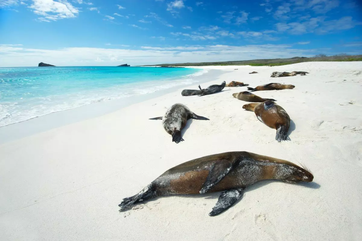 Det finns även många havsleguaner och sjölejon på ön, som är en av få platser i Galápagos där du kan möta galápagospälssälen.