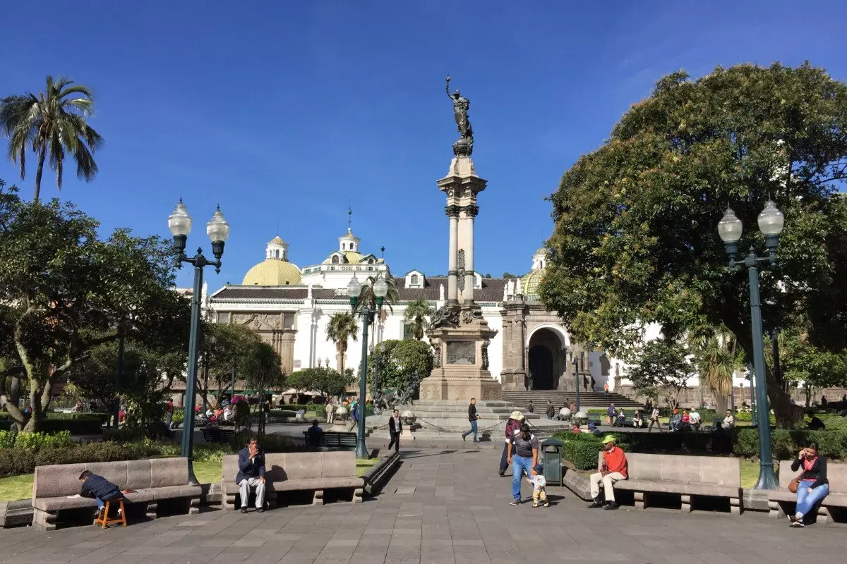 Stadsvandringen börjar med ett besök vid Plaza de la Independencia (”Självständighetstorget”), som omges av fyra viktiga byggnader: presidentens palats, regeringsbyggnaden, ärkebiskopens palats och Quitos katedral.