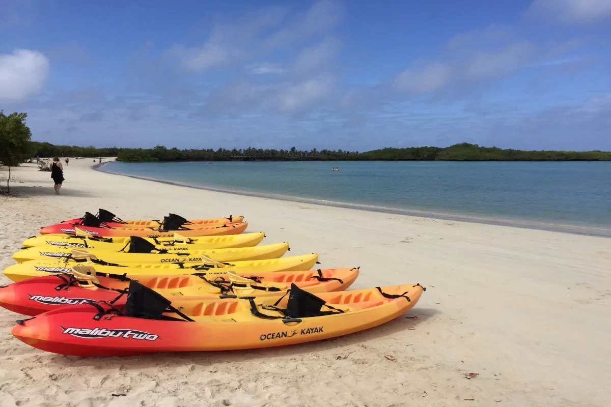 Vi kan varmt rekommendera att du packar ryggsäcken, tar på dig vandringsskorna och går ut till den vackra stranden Tortuga Bay. Det går en asfalterad stig ut till stranden från den sydvästra delen av Puerto Ayora. Det tar cirka 45 minuter en väg. Tortuga Bay är ett favoritställe för surfare, men vill du bada i lugnare vatten ska du gå till änden av stranden (cirka 2,5 kilometer) och till den bildsköna stranden Playa Mansa, som är en liten lagun omgiven av mangroveskog. Här kan du koppla av eller hyra en kajak och paddla runt och kika efter havssköldpaddor och havsleguaner som håller till i lagunen.