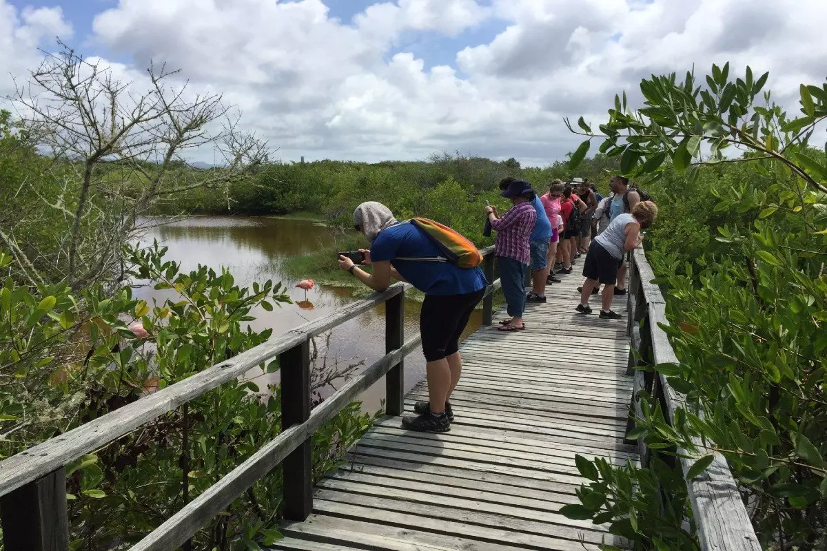 På eftermiddagen väntar en utflykt till några av Isabelas höjdpunkter. Turen börjar med ett besök på Arnaldo Tupiza sköldpaddsuppfödningscentret, som ligger strax utanför staden. Här arbetar frivilliga för att öka beståndet av landsköldpaddor på ön, och du får möjlighet att se hundratals landsköldpaddor i alla storlekar. Din guide tar dig även med in i ett spännande våtmarksområde där ni kan ha turen att se fåglar som styltlöpare, rörhöns och vitkindad and, samt de fascinerande flamingorna.