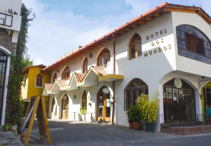 Hotel dos Mundos är en charmig oas som ligger i hjärtat av Panajachel, i närheten av Atitlánsjön.