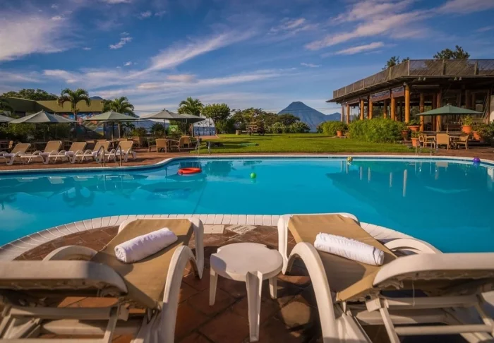 Efter en dag med upplevelser kan du ta dig ett dopp i poolen, eller njuta av en exotisk drink på en solstol i trädgården. Några få hundra meter från hotellet hittar du Atitlánsjön, där du kan beundra den förtrollande utsikten över vattnet med de majestätiska vulkanerna i horisonten.