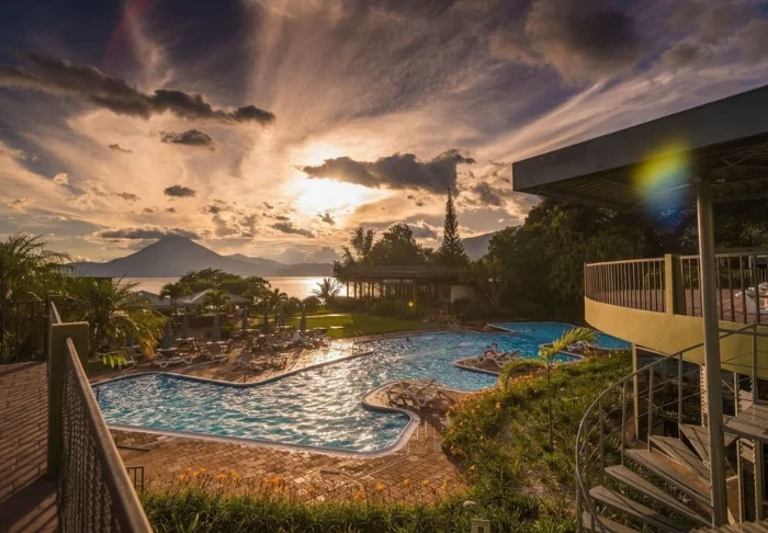 Porta Hotel del Lago ligger vid stranden av den vackra sjön Atitlán och har panoramautsikt över de imponerande vulkanerna San Pedro, Atitlán och Tolimán.
