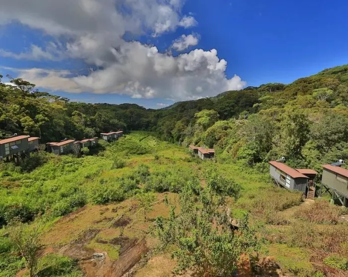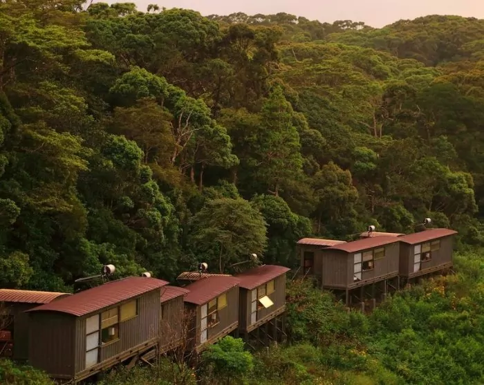 Lodgen består av 20 stugor som ligger utspridda i den gröna teplantagen. De är alla byggda av återvunna material. Själva stugorna är byggda av gamla fraktcontainrar medan väggar och tak är byggda av bambu och terrasserna av järnvägssliprar.
