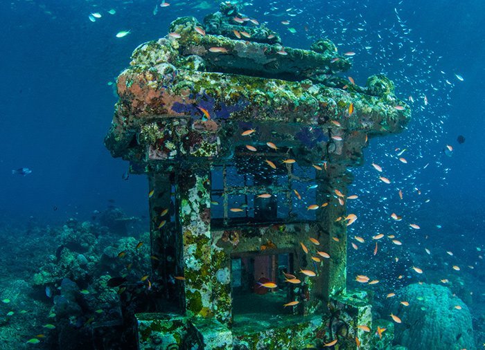 Från den mörka vulkanstranden ger du dig ut i havet och bara 20–70 meter från strandkanten öppnar sig en fantastisk och färgrik värld med koraller, hornkoraller, tropiska fiskar i alla regnbågens färger och havssköldpaddor. Som något alldeles speciellt får du även se ett undervattenstempel och undervattensstatyer. Din guide visar dig runt i vattnet och pekar ut de många vackra fiskarna.