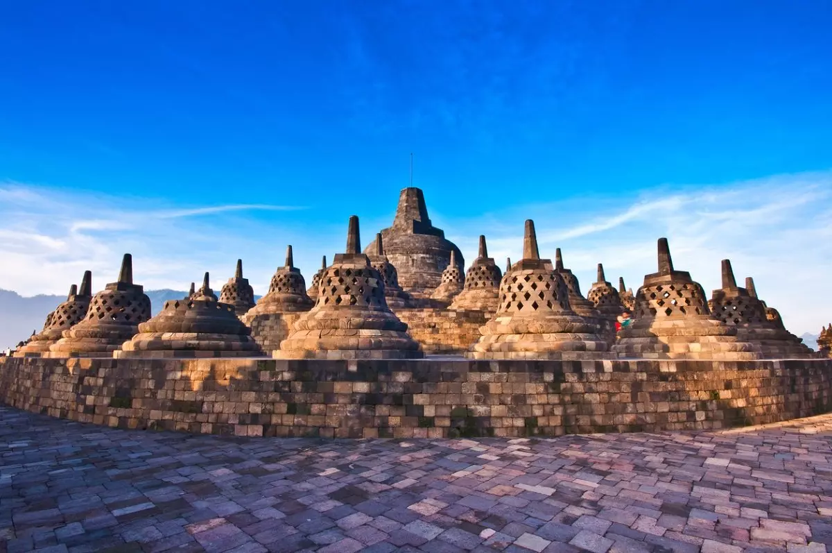 Dagen börjar med en härlig cykeltur genom de vackra landskapen runt den lilla byn Candirejo, där livet fortfarande levs på ett traditionellt sätt. Från cykelsadeln får du en bra och nära inblick i den javanesiska kulturen och livet på landet. Det är en fantastisk upplevelse att känna vinden i håret och insupa dofterna från landskapet runt omkring. Det finns tid för att göra stopp längs vägen och få en pratstund med lokalbefolkningen. Senare på dagen fortsätter du till det storslagna Borobudur, ”buddhisttemplet på kullen”, där du utforskar det enorma tempelkomplexet till fots. Under besöket får du höra om templets fascinerande historia och den tydliga symboliken i stenristningarna. Du kan också upptäcka dolda vrår och utsmyckningar i byggnadskomplexet. I slutet av dagen går turen tillbaka till hotellet.