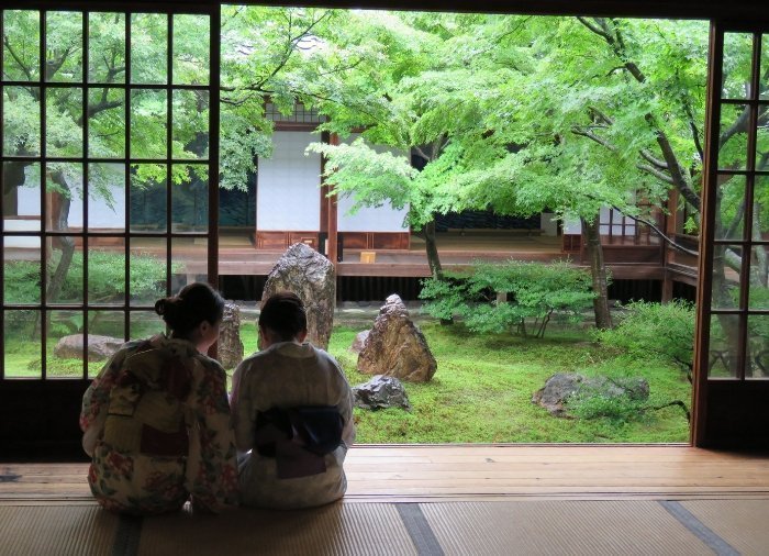Turen går vidare till Kenninji-templet, det äldsta zentemplet i Kyoto från år 1202. Templet är särskilt känt för sina vackra zen-trädgårdar och de imponerande Fujin Raijin-zu-målningarna, som visar Vindguden och Åskguden – en nationalskatt som målats av Tawaraya Soutatsu.