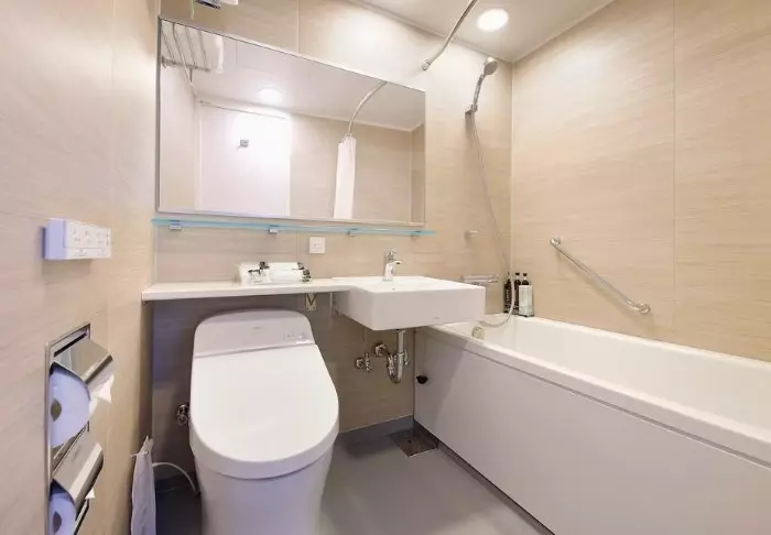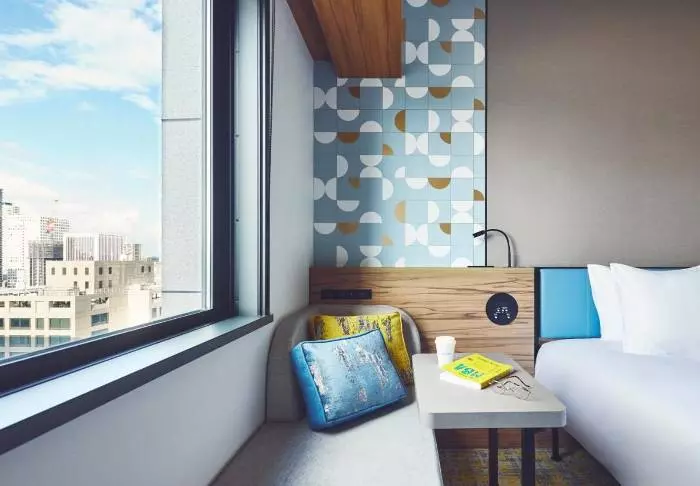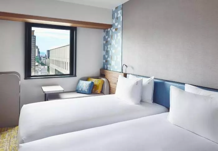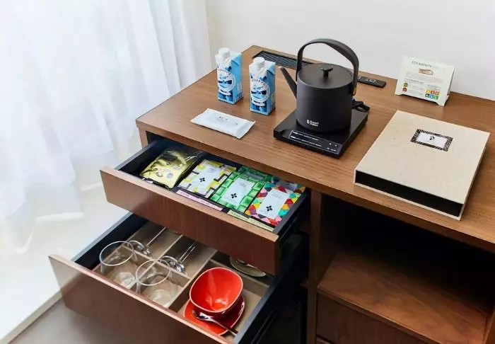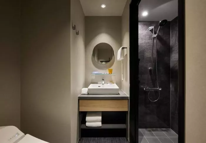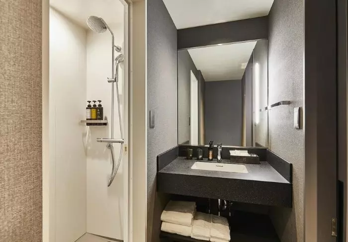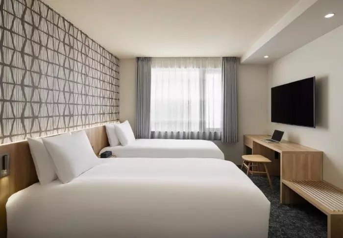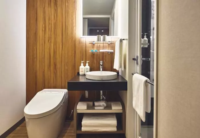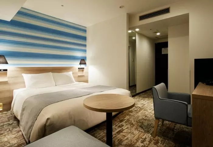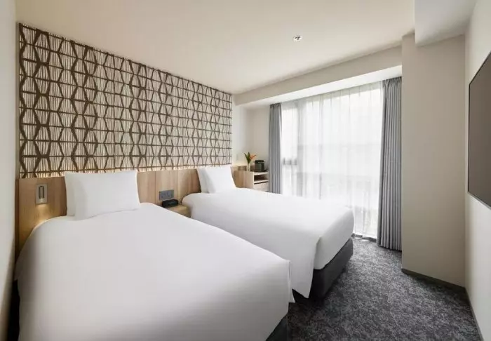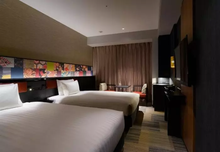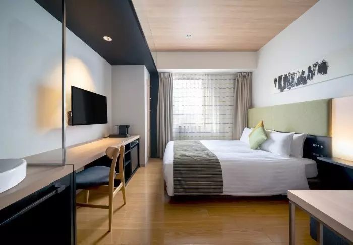 Hotellet har en modern och stilren inredning med varma toner och japansk minimalism. Standardrummen är praktiskt inredda och utrustade med allt du behöver efter en dag full av intryck – inklusive wifi, aircondition, kylskåp, TV och vattenkokare, så att du kan börja morgonen med en kopp grönt te eller kaffe. Badrummet är funktionellt och har både toalettartiklar och badkar, så att du kan koppla av efter en hektisk dag.