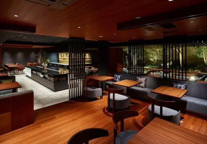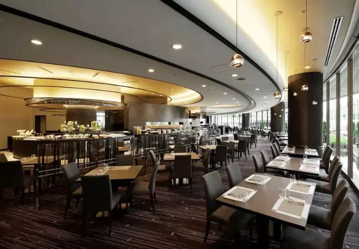 Hotellet har en fin frukostrestaurang, som fokuserar på färska, lokala råvaror. Här serveras både japanska och västerländska rätter.
