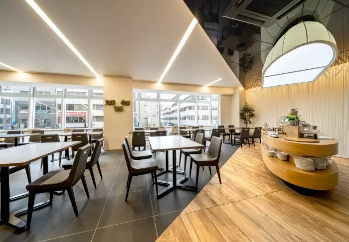 Hotellet har även en restaurang som är öppen varje dag från kl. 6.30 till 10.00. Här kan du njuta av både japanska och västerländska frukostalternativ.