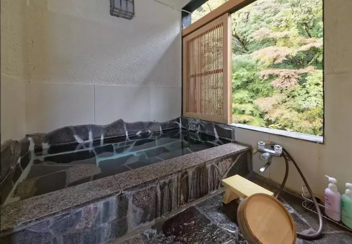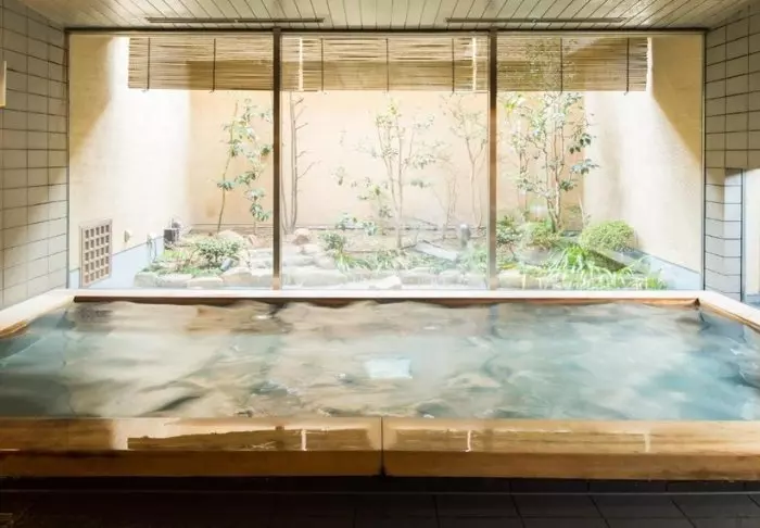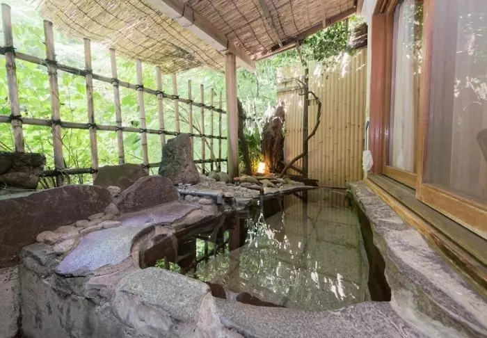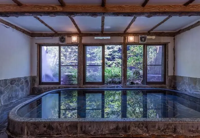 När du har gått mycket under dagen är hotellets onsen-bad den perfekta platsen att slappna av på och se ut i den vackra trädgården, som skiftar uttryck efter årstiderna.