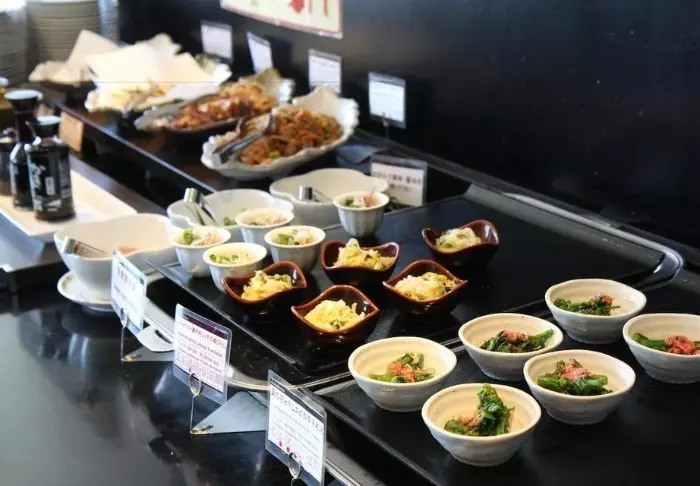Hotellets restaurang erbjuder en frukostbuffé bestående av både japanska och västerländska rätter.