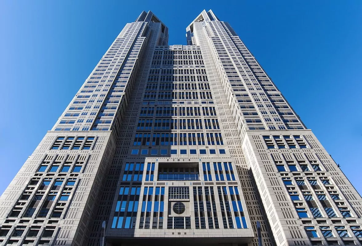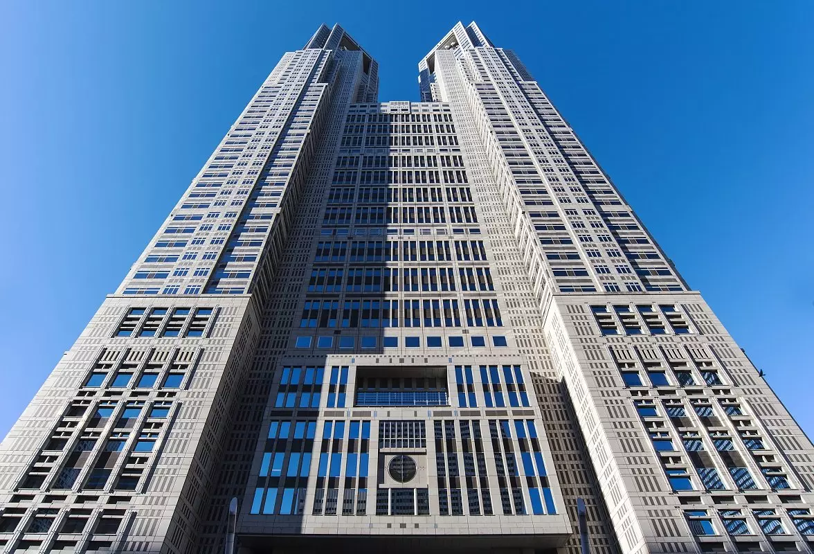 Härifrån tar guiden med dig till Tokyo Metropolitan Government Building i Shinjuku, vilket är en av Tokyos högsta och mest karaktäristiska skyskrapor. Byggnaden är 243 meter hög och har två torn med varsitt observationsdäck på 202 meters höjd, varifrån man har en formidabel utsikt över staden. Beroende på vädret kan man se berget Fuji i fjärran, men även de mer närliggande Tokyo Skytree, Tokyo Tower, Meijihelgedomen och Tokyo Dome.