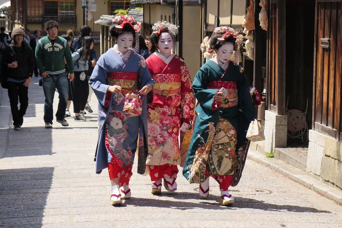 I gatubilden ser du också många lokala turister klädda i traditionell kimono. Det är något många gillar att göra under en dag – det gäller både män och kvinnor. Det är spännande att se och särskilt de unga människorna tycker uppenbarligen att det är riktigt trevligt.