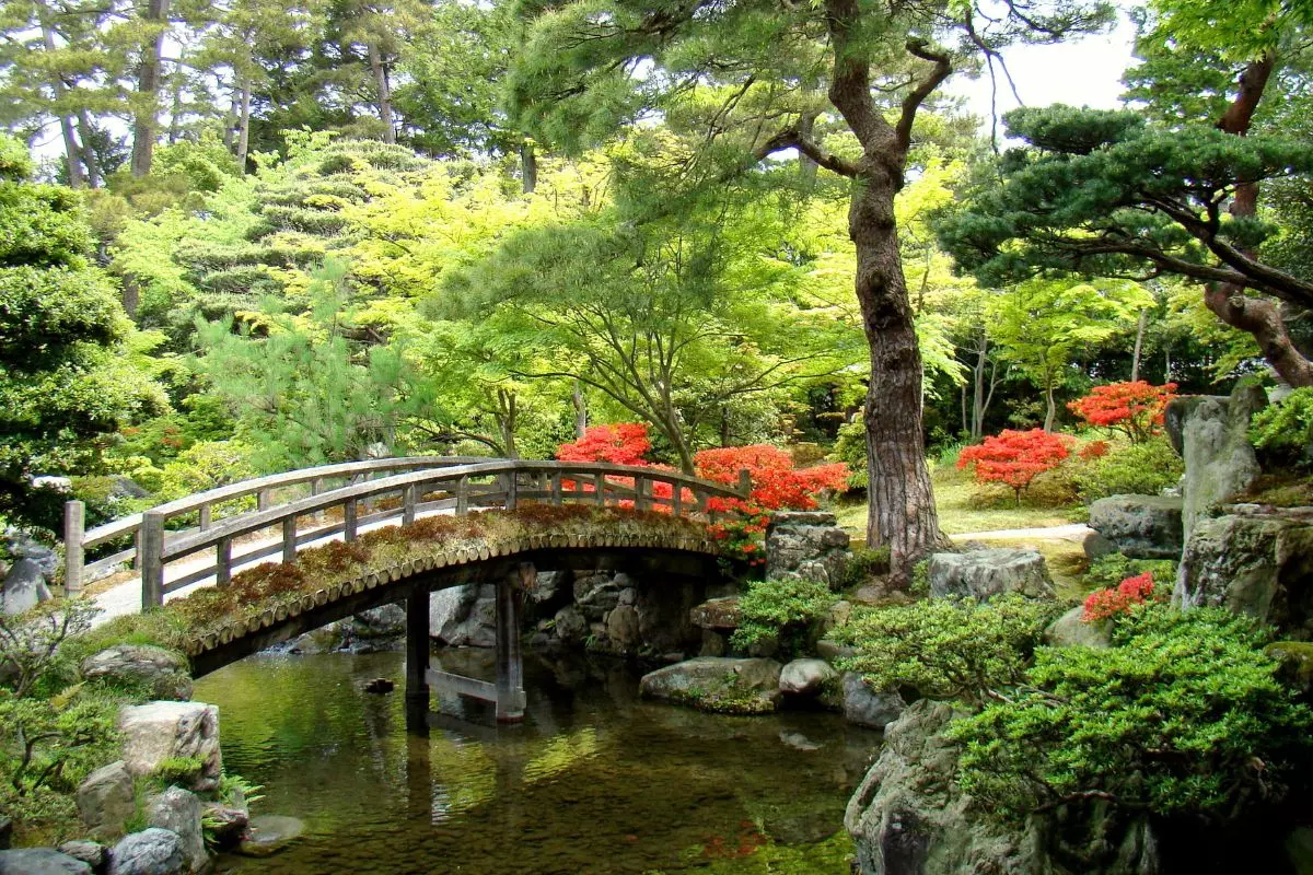 Sedan går du till den nästan 400 år gamla parken Kenrokuen, som anses vara en av Japans tre vackraste parker. Den är därför mycket populär. Namnet Kenrokuen hänvisar till den perfekta asiatiska kombinationen av vatten, rymd och avskildhet, vilket är några av elementen som skapar en vacker japansk trädgård.