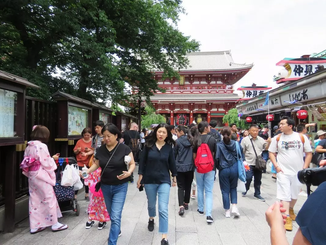 Asakusa är Tokyos gamla stadsdel. Här står vissa gamla byggnader fortfarande kvar och området saknar stora höghus. Förutom atmosfären på gatorna och i gränderna är Sensoji den främsta sevärdheten. Mittemot ingången till templet ligger turistinformationen. Ta hissen högst upp i byggnaden och få en fin utsikt över tempelkomplexet. Sensoji är Tokyos äldsta tempel och för många japaner har det en särskild betydelse att komma hit och tända rökelse. Nakamise är den långa gågatan med souvenirbutiker och mataffärer som leder upp till Sensojitemplet. Här är det alltid liv och rörelse och du ser kvinnor, par och ibland hela familjer som är klädda i traditionella kimonor. De är på väg för att tända rökelse och svepa den heliga röken runt sig i hopp om att bli kvitt sjukdomar, få framgång i livet, få barn eller något helt annat.
