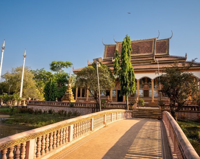 Efter lunch fortsätter utflykten till ett närliggande buddhistiskt tempel. Här kommer du att få se en traditionell khmerisk välsignelse som utförs av en buddhistisk munk, vilket ger dig en unik inblick i de lokala religiösa traditionerna och trosuppfattningarna.